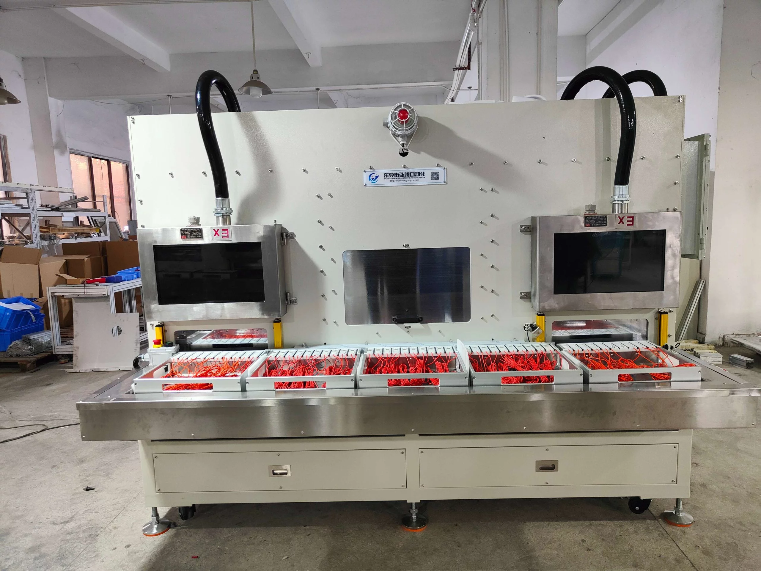 内部集成高清防爆摄像系统,隔爆间内运作情况实时传输至屏幕,生产全流程透明可视、尽在掌握。