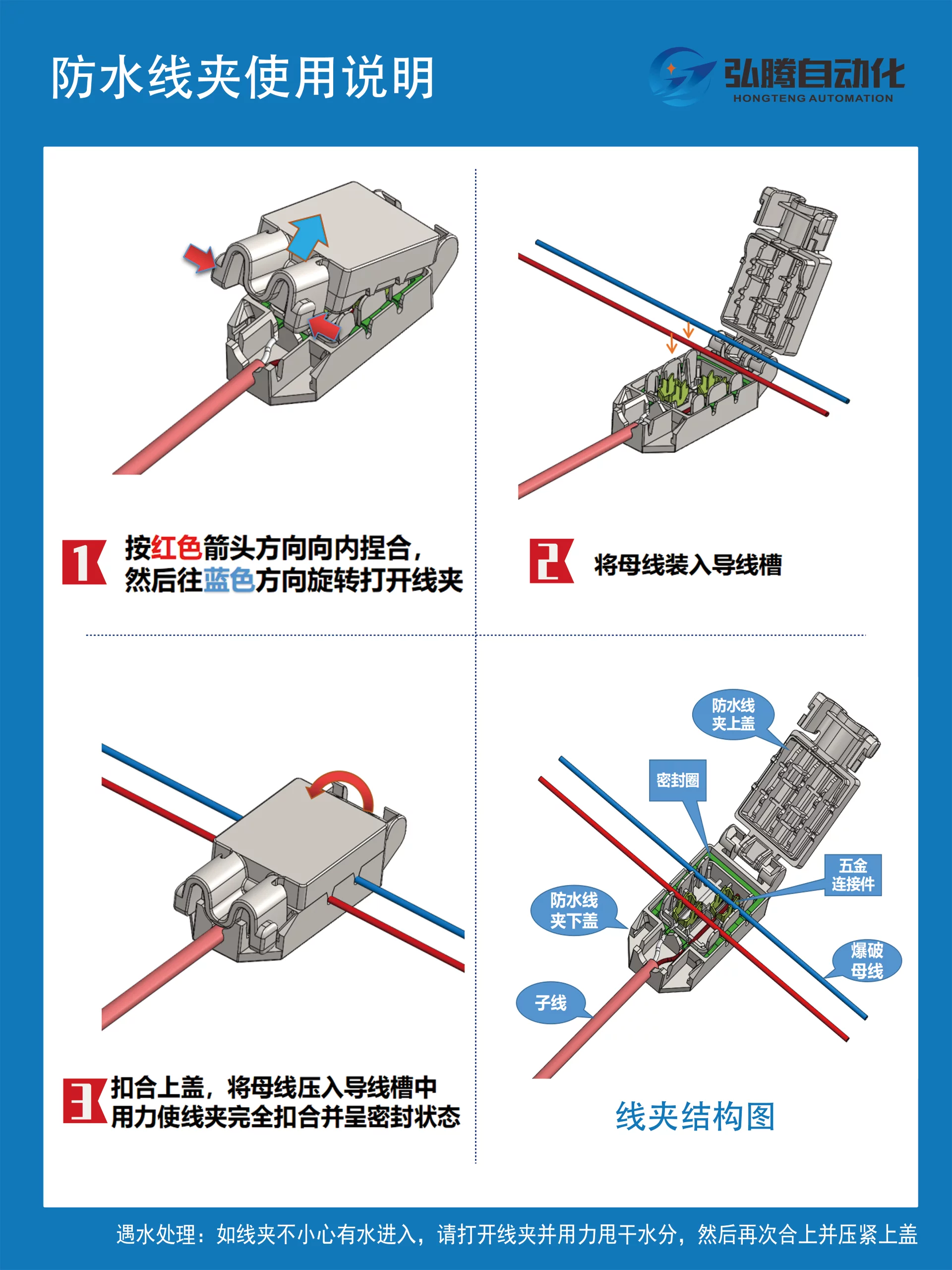 HT-FSXJ系列防水线夹是弘腾首创研发的新型电子雷管快速连接组件,专为复杂、潮湿及水下爆破作业环境设计。