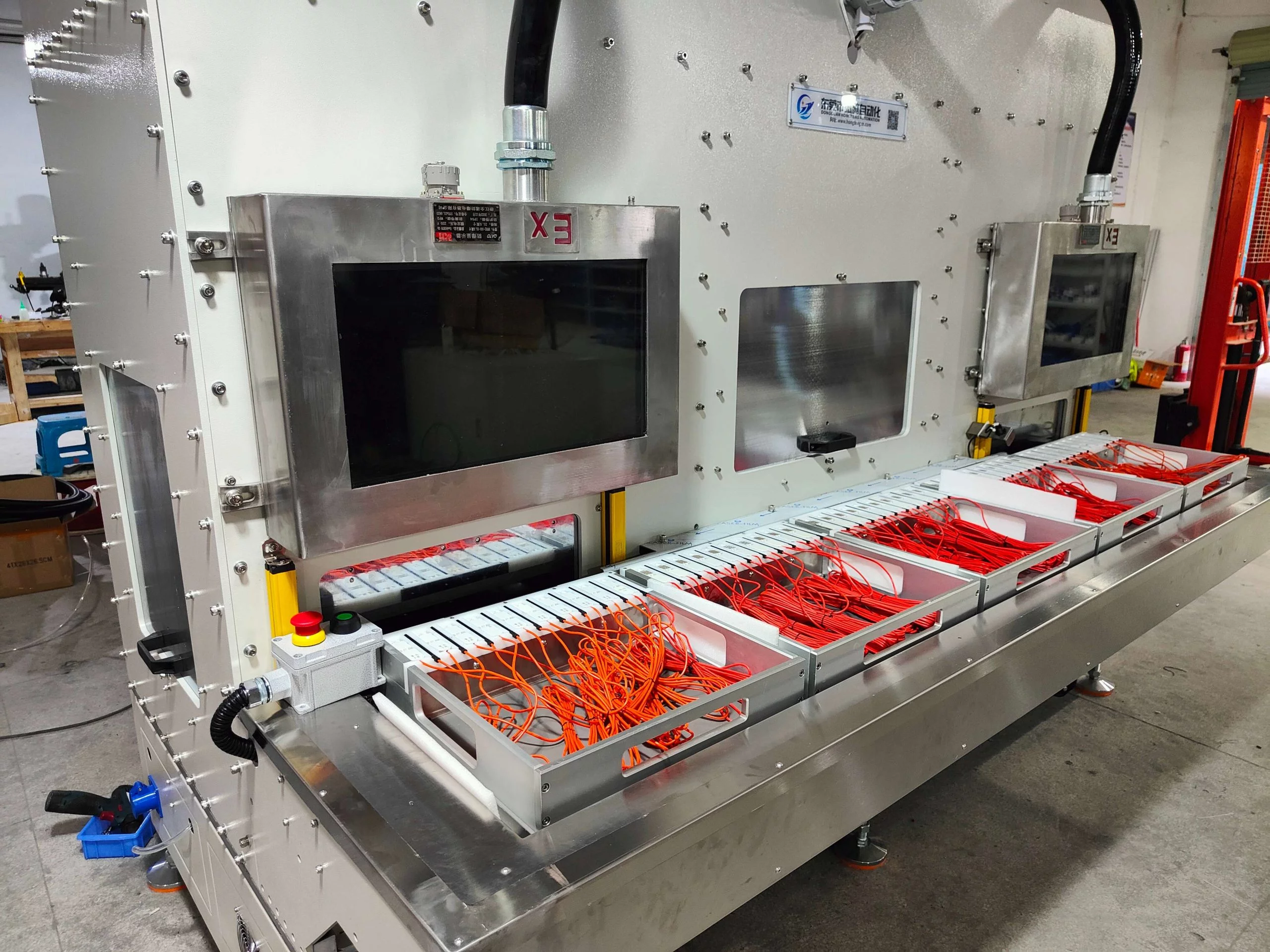 内部集成高清防爆摄像系统,隔爆间内运作情况实时传输至屏幕,生产全流程透明可视、尽在掌握。